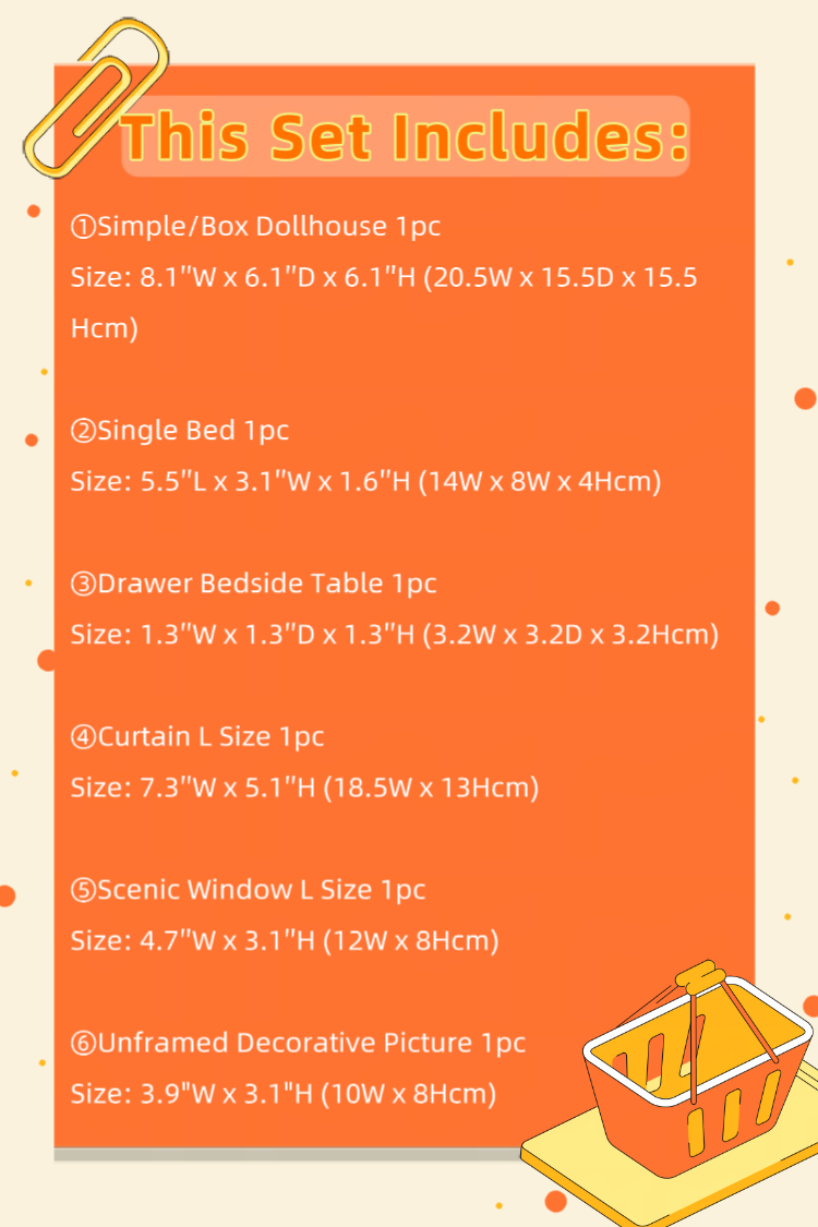 ①Simple/Box Dollhouse 1pc. Size: 8.1″W x 6.1″D x 6.1″H (20.5W x 15.5D x 15.5Hcm)