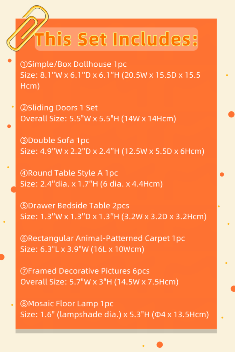 ①Simple/Box Dollhouse 1pc. Size: 8.1″W x 6.1″D x 6.1″H (20.5W x 15.5D x 15.5Hcm)