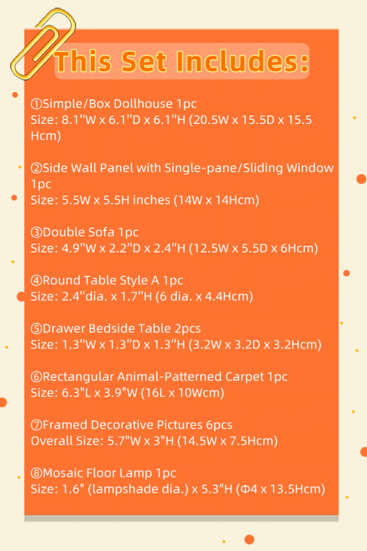 ①Simple/Box Dollhouse 1pc. Size: 8.1″W x 6.1″D x 6.1″H (20.5W x 15.5D x 15.5Hcm)