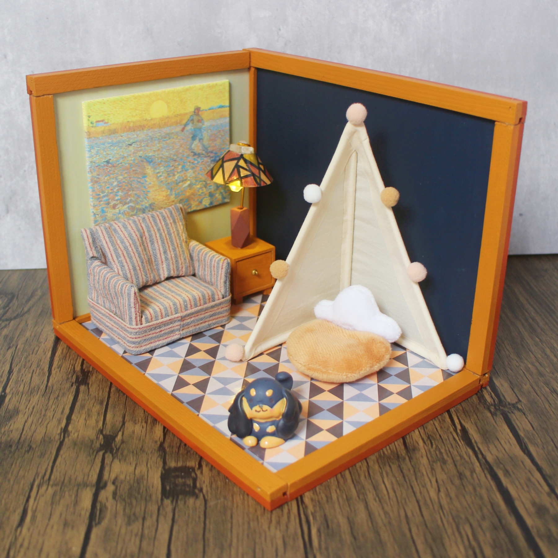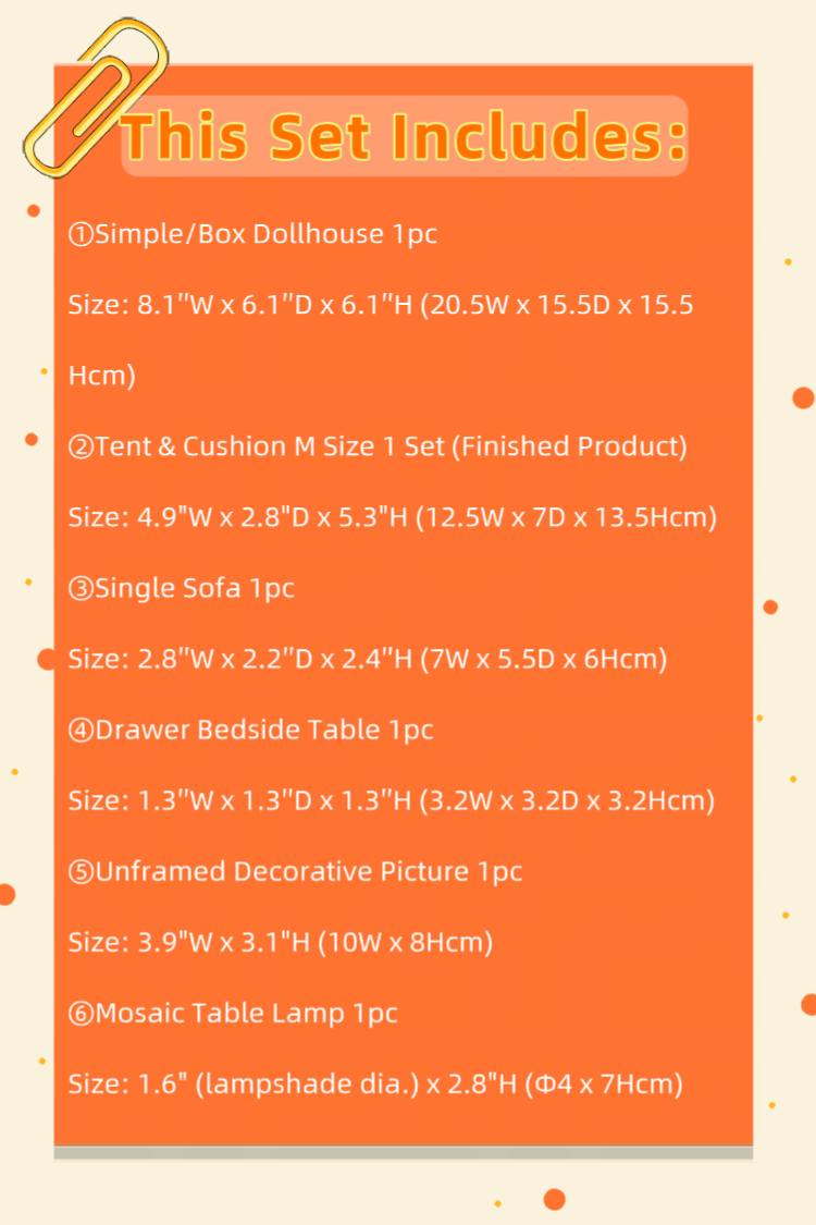 ②Tent & Cushion M Size 1 Set (Finished Product). Size: 4.9″W x 2.8″D x 5.3″H (12.5W x 7D x 13.5Hcm)