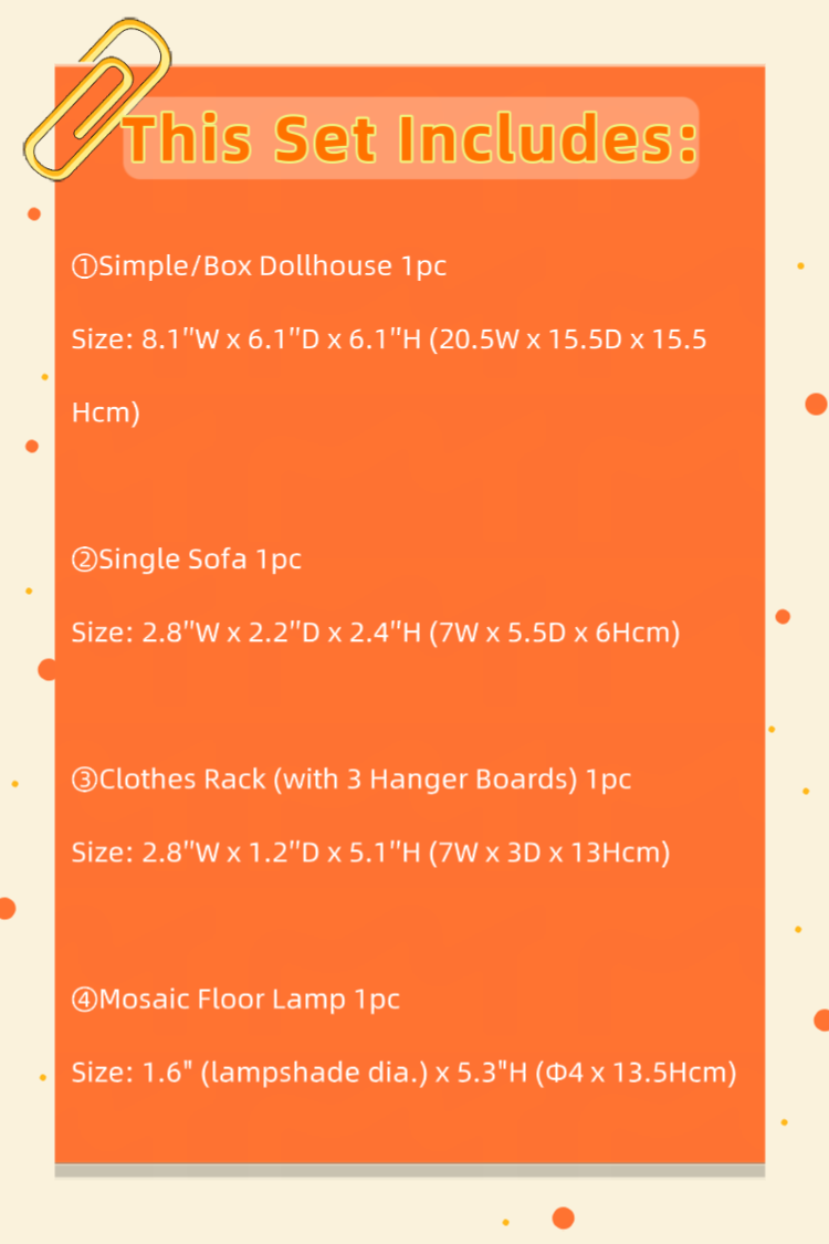 ①Simple/Box Dollhouse 1pc. Size: 8.1″W x 6.1″D x 6.1″H (20.5W x 15.5D x 15.5Hcm)