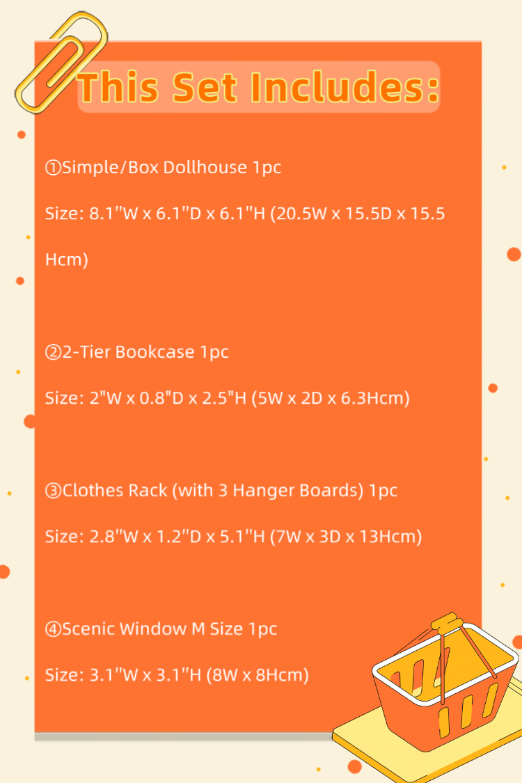 ①Simple/Box Dollhouse 1pc. Size: 8.1″W x 6.1″D x 6.1″H (20.5W x 15.5D x 15.5Hcm)