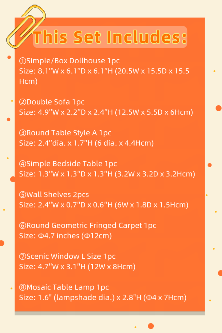 ①Simple/Box Dollhouse 1pc. Size: 8.1″W x 6.1″D x 6.1″H (20.5W x 15.5D x 15.5Hcm)