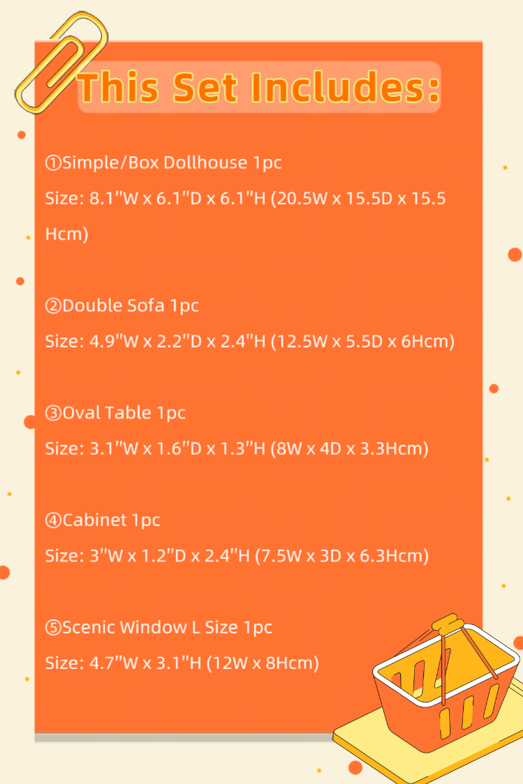 ①Simple/Box Dollhouse 1pc. Size: 8.1″W x 6.1″D x 6.1″H (20.5W x 15.5D x 15.5Hcm)